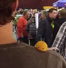 Standnähe jedem der vorbeigeht einen lustigen „Wuppie“